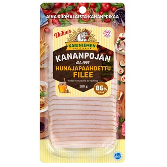 Kariniemen Kananpojan Hunajapaahdettu filee 180 g on valmistettu Suomessa.