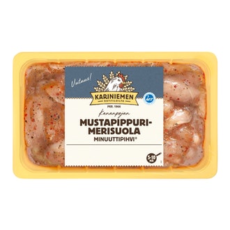 Kariniemen Kananpojan Minuuttipihvi mustapippuri-merisuola 760g on valmistettu Suomessa.