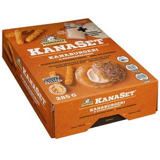 Kariniemen kanaset 285g chicken burger & fries sisältää 268 kilokaloria per 100g. Koko 285g pakkaus sisältää yhteensä 764 kcal.