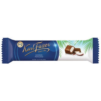 Karl Fazer 38g kookos suklaapatukka on valmistettu Suomessa.