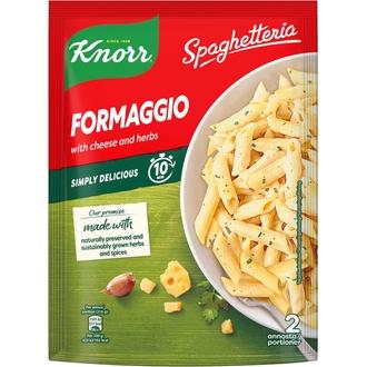 Knorr Spaghetteria Formaggio on nopea, helppo ja maukas pasta-ateria. Spaghetteria Formaggio on herkullinen, täyteläisen kermainen juustopasta, joka on täydellinen valinta arjen kiireisiin hetkiin – hyvää makua unohtamatta! Lisää pasta-ainekset ja vesi kattilaan ja nopea, maukas valmisruoka on valmis nautittavaksi. Pastaa, juustoa ja yrttejä. Valmista 10 minuutissa.