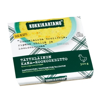Kokkikartano kana-kookoskeitto 300g on valmistettu Suomessa.