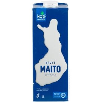 Kotimaista iskukuumennettu vähälaktoosinen kevytmaito 1L on valmistettu Suomessa.