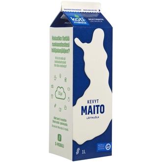 Kotimaista kevytmaito 1 L on valmistettu Suomessa.