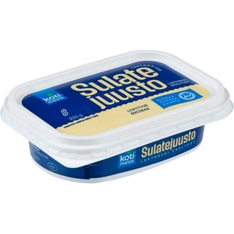 Maustamaton levittyvä Kotimaista-sulatejuusto. Laktoositon. Voimakassuolainen.