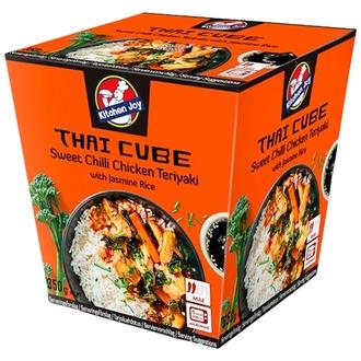 Kitchen Joy Thai Cube Sweet Chili Teriyaki -kanaa ja jasmiiniriisiä pakasteateria 350g