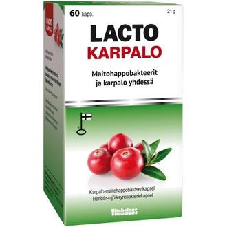 Maitohappobakteerit ja karpalo yhdessä. Lacto Karpalo on yhdistelmävalmiste, joka sisältää karpalouutetta ja neljää erilaista maitohappobakteerikantaa. Karpalo on tunnettu erityisistä flavonoideistaan, jotka antavat marjoille niiden syvän punaisen värin. Karpalon flavonoidien, erityisesti proantosyanidiinien, vaikutuksia terveyteen ja etenkin virtsateiden hyvinvointiin on tutkittu paljon. Karpalouutteen lisäksi Lacto Karpalo sisältää neljää erilaista maitohappobakteerikantaa. Maitohappobakteerit ovat hyviä bakteereita paitsi suolistossa, myös emättimen ja virtsateiden limakalvoilla. Lacto Karpalon maitohappobakteereilla on erityinen suojaus, minkä ansiosta ne säilyvät elävinä ja toimintakykyisinä mahanesteen ja karpalouutteen happamuudesta huolimatta.