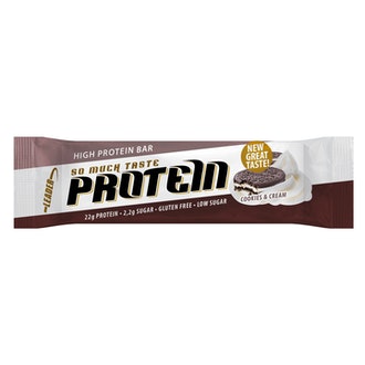 Kyllä, Leader SMT 61g cookies - cream sisältää 35,0g proteiinia per 100g, mikä tekee siitä hyvän proteiinin lähteen.