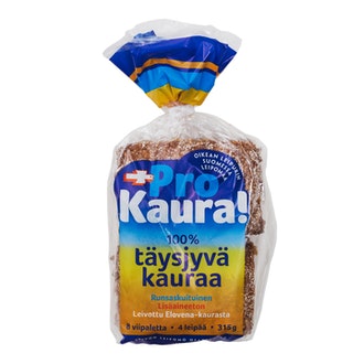 Leivon ProKaura 4 kpl, 315g 100% täysjyväkaura, halkaistu kauraleipä on valmistettu Suomessa.
