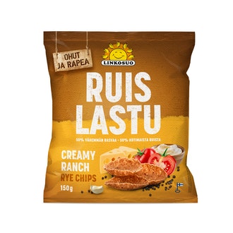 Linkosuo ruislastu 150g creamy ranch on valmistettu Suomessa.