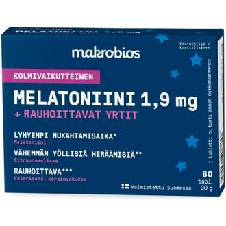 Makrobios Kolmivaikutteinen Melatoniini 1,9Mg + Rauhoittavat Yrtit 60 Tablettia 30G