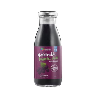 Marjex mustaherukkatäysmehushotti 0,25l on valmistettu Suomessa.