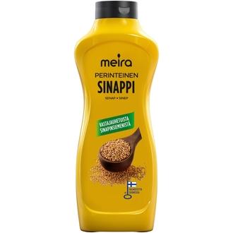 Meira Perinteinen sinappi kunnioittaa vanhaa hyvää sinapinvalmistuksen tietotaitoa. Kotimainen, suomalaiseen makuun sopiva sinappimme valmistetaan tuoreista ja laadukkaista sinapinsiemenistä, jotka jauhetaan Meiran omilla kivimyllyillä perinteisin menetelmin. Se ei sisällä sakeuttamisaineita eikä lisättyjä aromeja. Meira Perinteinen sinappi valmistetaan Meiran tehtaalla Helsingin Vallilassa. Tuote on merkitty suomalaisella Avainlippu-tunnuksella.