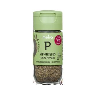 Meira Pippuriseos kolme pippuria ei lisättyä suolaa 40g on valmistettu Suomessa.