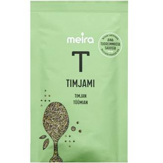 Timjami on melko voimakkaan makuinen yrtti. Se sopii kasvis- ja liharuokien, kalakeiton, äyriäisten ja salaattien maustamiseen. Meiran laatutakuu: Meiran mausteet ovat aina tuoreimmasta sadosta, jolloin kaikki luonnolliset makuaromit ja tuoksut ovat tallella.