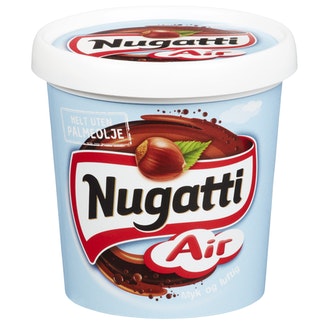 Nugatti Air kuohkea hasselpähkinä-kaakaomousselevite 340g UTZ sisältää 520 kilokaloria per 100g. Koko 340g pakkaus sisältää yhteensä 1768 kcal.