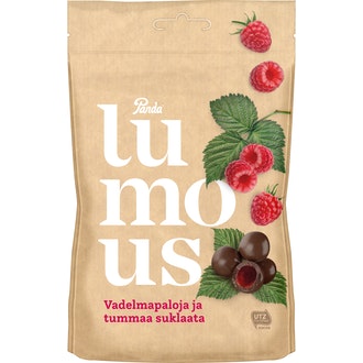 Panda Lumous 120g tummasuklaavadelma sisältää seuraavia ainesosia: