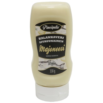 Pimeäpullo Kalankaveri sitruunainen majoneesi 330g on valmistettu Suomessa.