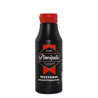 Pimeäpullo Mestarin salaattikastike 250g on valmistettu Suomessa.