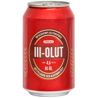 Pirkka III-olut täyteläinen 4,6% 0,33l on valmistettu Suomessa.