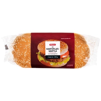 Pirkka iso hampurilaissämpylä 4kpl/300g sisältää seuraavia ainesosia: