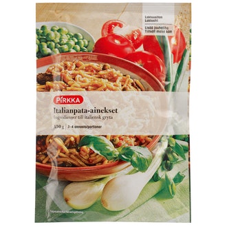 Pirkka italianpata-ainekset 150g on valmistettu Suomessa.