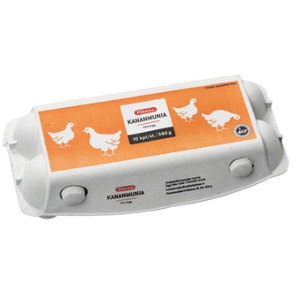 Pirkka kananmuna 10 kpl/ 580g on valmistettu Suomessa.