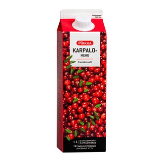 Pirkka karpalomehu 1l sisältää seuraavia ainesosia: