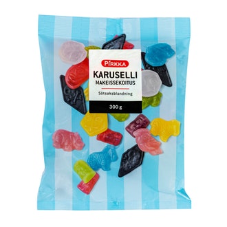 Pirkka karuselli makeissekoitus 300g on valmistettu Suomessa.