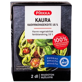 Pirkka kaura kasvirasvasekoite 16% 2dl sisältää seuraavia ainesosia: