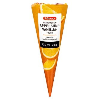 Pirkka laktoositon appelsiini-vaniljatuutti 120ml/72g sisältää seuraavia ainesosia: