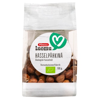 Pirkka Luomu hasselpähkinä 100g sisältää seuraavia ainesosia: