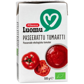 Pirkka Luomu paseerattu tomaatti 500g sisältää seuraavia ainesosia: