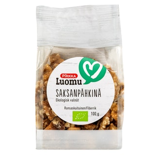 luomuSAKSANPÄHKINÄ. Saattaa sisältää pieniä määriä maapähkinää ja muita pähkinöitä.