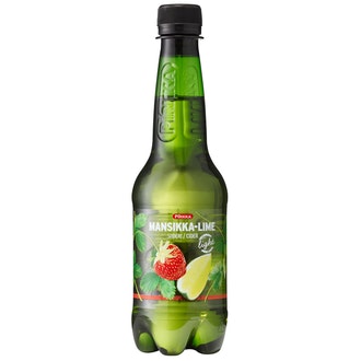 Pirkka mansikka-lime siideri light 4,7% 0,4l on valmistettu Suomessa.