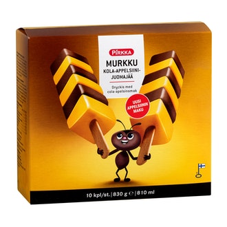Pirkka Murkku kola-appelsiinijuomajää 10kpl/830g on valmistettu Suomessa.