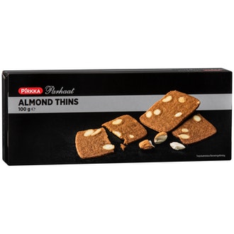 Pirkka Parhaat almond thins 100g sisältää seuraavia ainesosia: