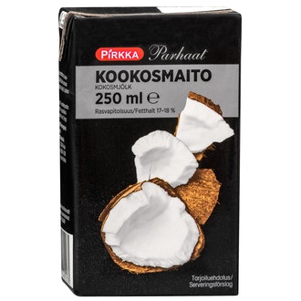 Pirkka Parhaat kookosmaito 250ml sisältää seuraavia ainesosia: