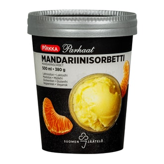 Pirkka Parhaat mandariinisorbetti 500ml/380g sisältää seuraavia ainesosia: