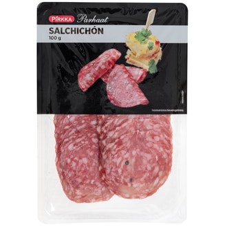 Pirkka Parhaat Salchichón 100g sisältää seuraavia ainesosia:
