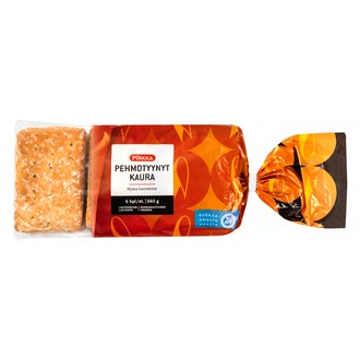 Pirkka pehmotyynyt kaura 6kpl/340g on valmistettu Suomessa.