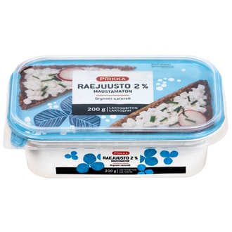 Pirkka raejuusto 2 % maustamaton 200g laktoositon sisältää seuraavia ainesosia: