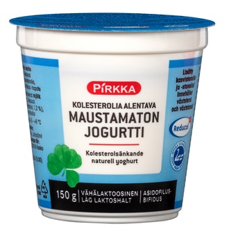 Pirkka Reducol kolesterolia alentava jogurtti maustamaton 150g on valmistettu Suomessa.