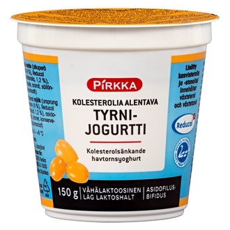 Pirkka Reducol kolesterolia alentava jogurtti tyrni 150g on valmistettu Suomessa.
