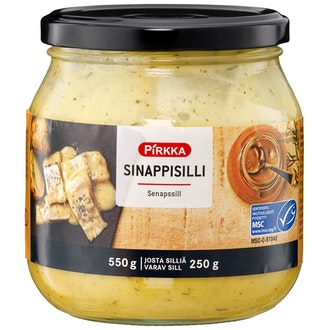 Pirkka sinappisilli 550g/250g MSC sisältää seuraavia ainesosia: