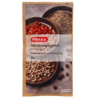 Pirkka sitruunapippuri 40g mausteseos on valmistettu Suomessa.