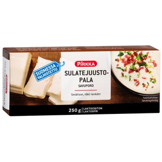 Pirkka sulatejuustopala savuporo 250g laktoositon on valmistettu Suomessa.