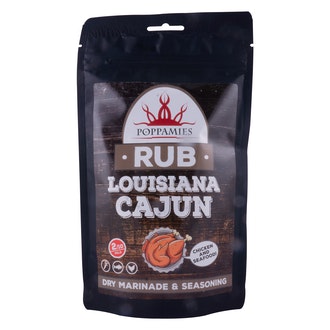 Louisiana Cajun Rub on Cajun-henkeen tehty makeuttamaton mausteseos erityisesti kanalle ja mereneläville. Poppamiehen RUB-mausteet sopivat kuivamarinointiin eli lihaan hierottavaksi ja yleiseen maustamiseen kotikeittiössä sekä grillin äärellä. Gluteeniton, laktoositon, vegaaninen.