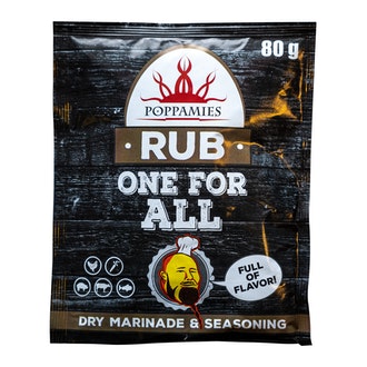 Poppamies One For All Rub & Seasoning Yleisgrillimauste 80G on valmistettu Suomessa.