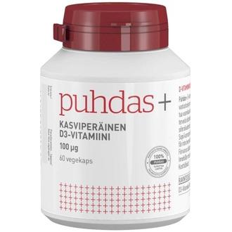 Puhdas+ D3-vitamiini on markkinoiden ensimmäinen täysin kasviperäinen ja lammasvapaa D3-vitamiinivalmiste. Se on ensimmäinen D3-vitamiinivalmiste, joka sopii myös kasvissyöjille ja vegaaneille. Tuote on kotimainen, vahva ja markkinoiden puhtain. Puhdas+ tuotteet ovat korkealaatuisia ja kotimaisia ravintolisiä. Valmistuksessa ei käytetä ylimääräisiä ainesosia, kuten säilöntäaineita, väriaineita ja pintakäsittelyaineita.
